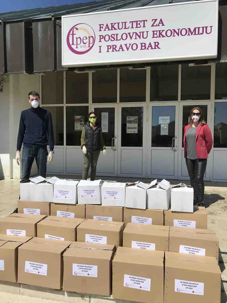 Nevladinoj organizaciji “Adria” i njihovim korisnicima pomoć u velikim paketima, sa svim potrepštinama za jednu porodicu, uručili su i predstavnici Fakulteta za poslovnu ekonomiju i pravo (FPEP) u Baru.
